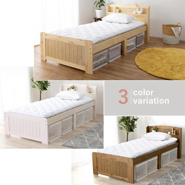 ベッド シングルベッド MB-5915S 宮付き 宮棚 フレームのみ 木製 コンセント付き 組立式 ベッド下 収納スペース 高さ調節可能 3段階 耐荷重200kg カントリー風