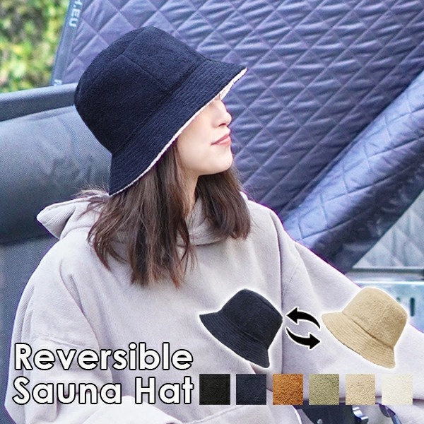 サウナハット おしゃれ レディース メンズ リバーシブル コットン100% メール便送料無料 洗濯可能 洗える かわいい シンプル タオル地 タオル生地 サウナ用品 サウナグッズ サウナー サ活 サウナ帽子 バケットハット バケハ【Reversible Sauna Hat】