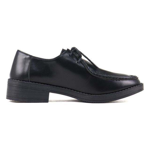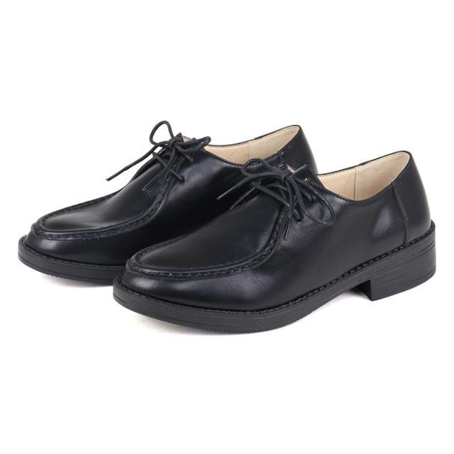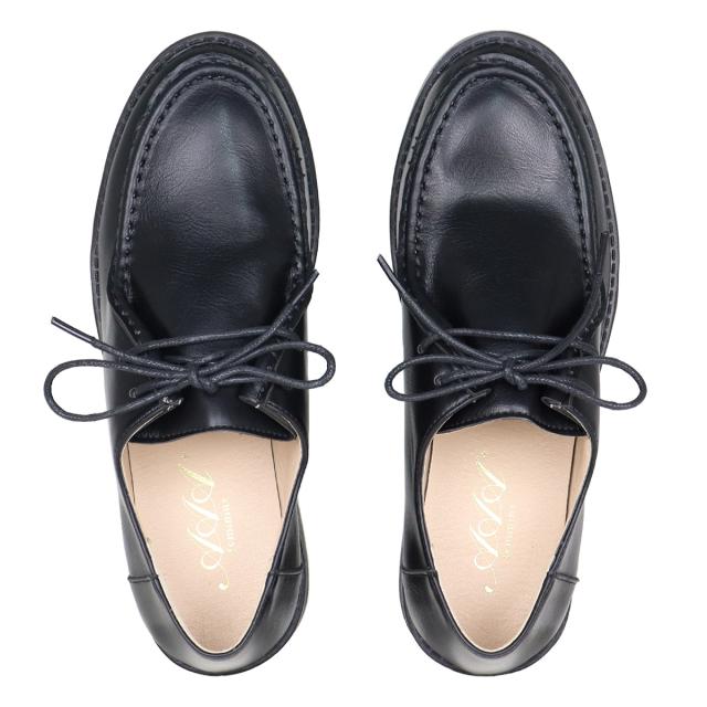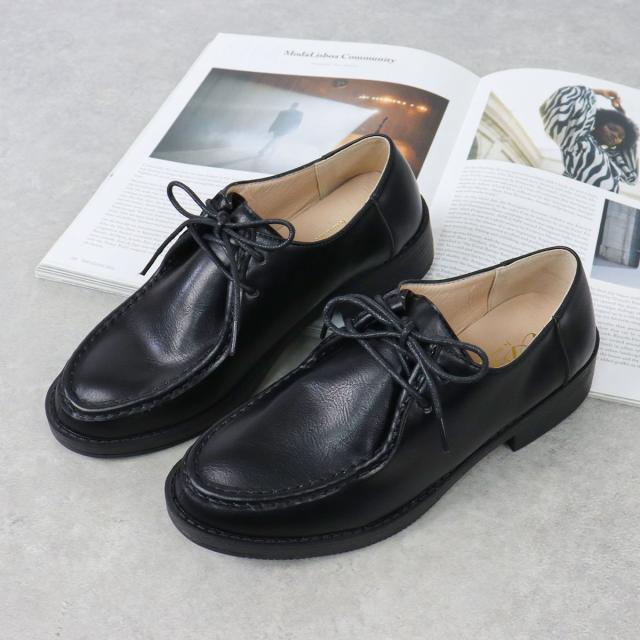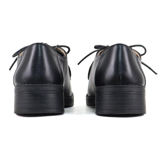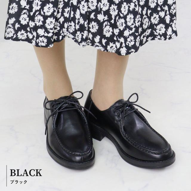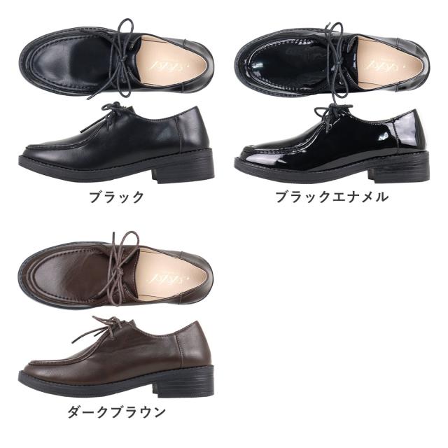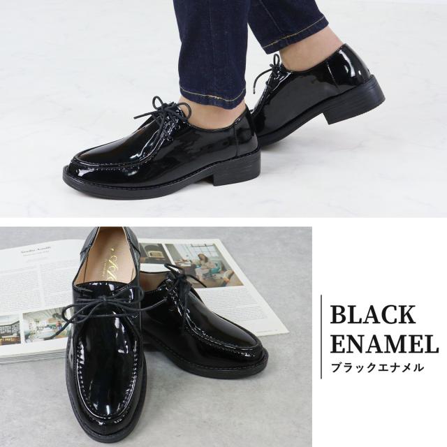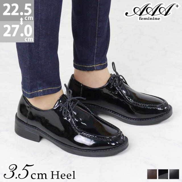 チロリアンシューズ レディース 紐靴 モカシン ラウンドトゥ 合皮 レザー エナメル おじ靴 メンズ ユニセックス 太めヒール 3.5cmヒール No.3577 22.5cm〜27.0cm 黒 ブラック AAA+ Feminine サンエープラスフェミニン