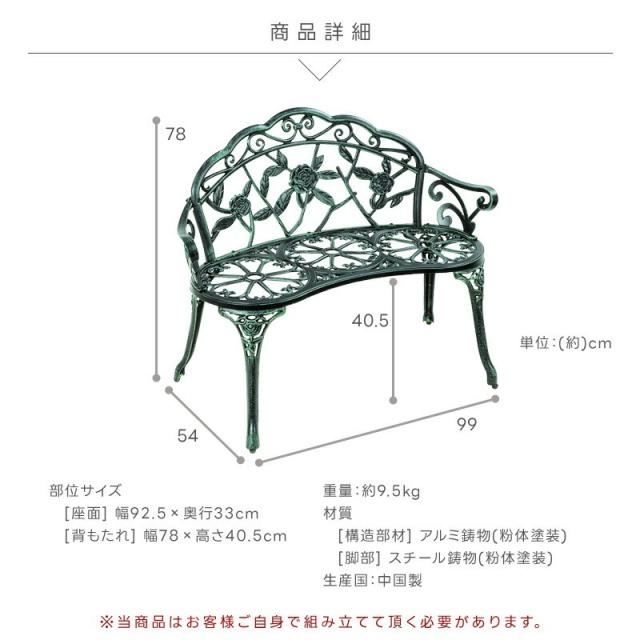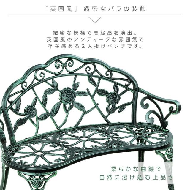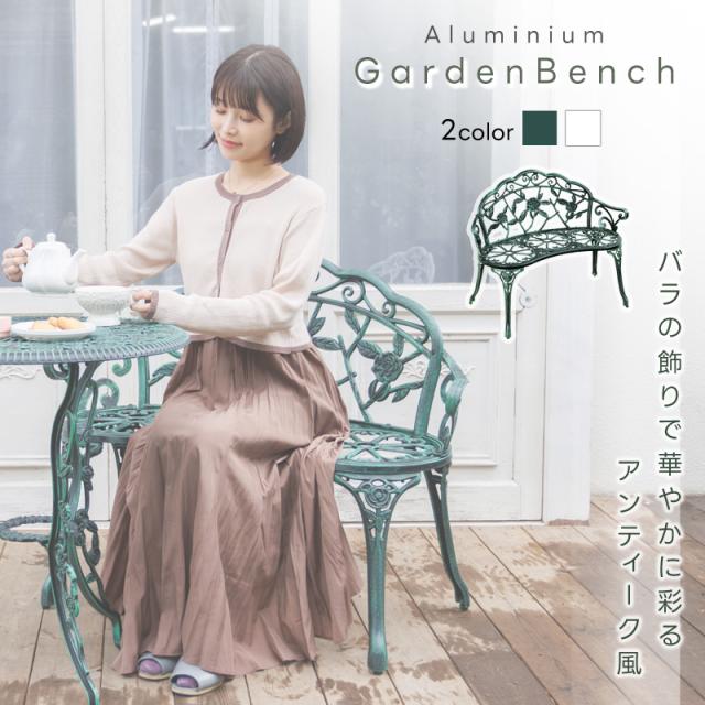 ガーデン ベンチ アルミ 鋳物 ガーデンチェア 屋外 ベランダ バルコニー 北欧 英国風 ローズ バラ アンティーク ガーデンファニチャー 翌日配送