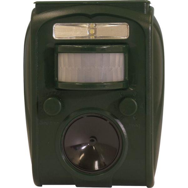 ・ソーラー充電式の害獣対策商品です。・動物が赤外線センサーの範囲に侵入し感知すると動物が嫌がる超音波を発生させたり、LEDライトを点滅させ追い払います。・付属のスパイクを使用して、地面から浮かせて設置可能です。