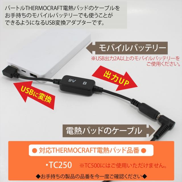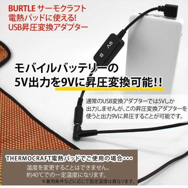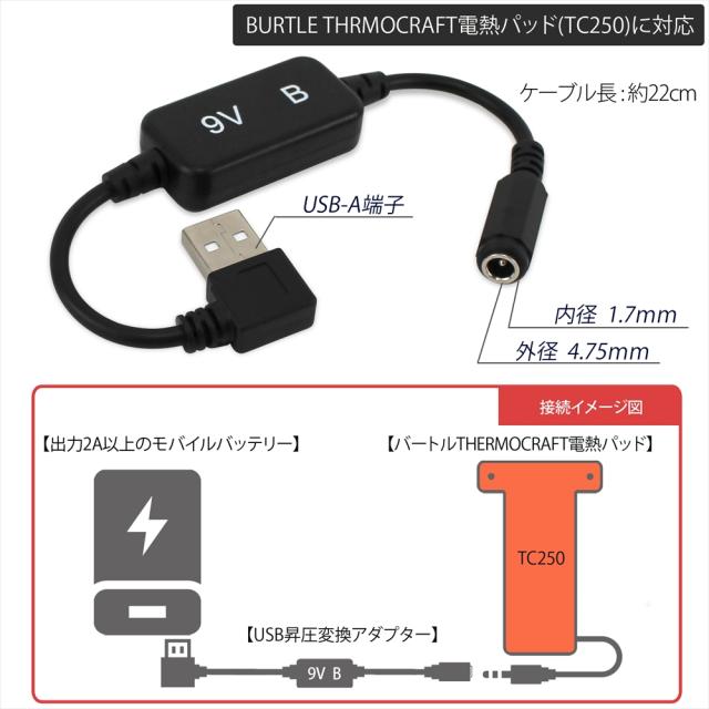 電熱パッド TC250 BURTLE USB昇圧アダプタ バートル サーモクラフト THERMOCRAFT ヒーターベスト モバイルバッテリー 【9V-B】 防寒ジャケット 防寒ベスト ヒートベスト 変換 モバイルバッテリー アダプター USB-A TC250 2021
