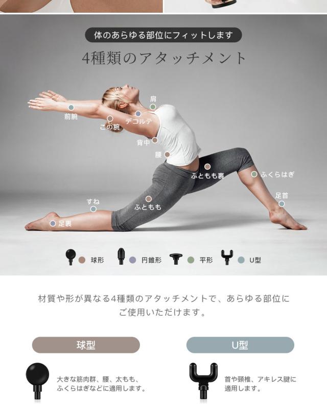4種類のアタッチメント、体のあらゆる部位にフィットします。