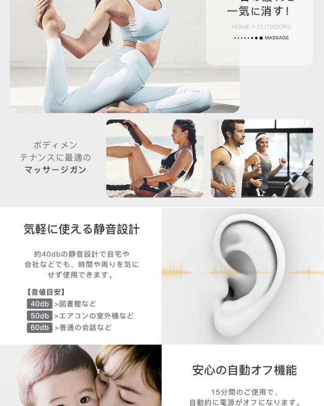 ※ 医師から、各種マッサージおよびマッサージャー・マッサージ機・マッサージ器・マッサージガン等の使用を禁じられている方は、絶対にご使用にならないでください。