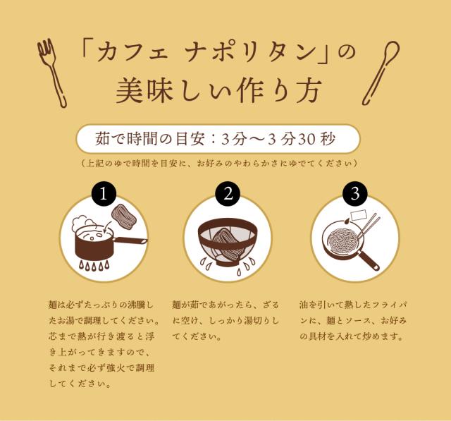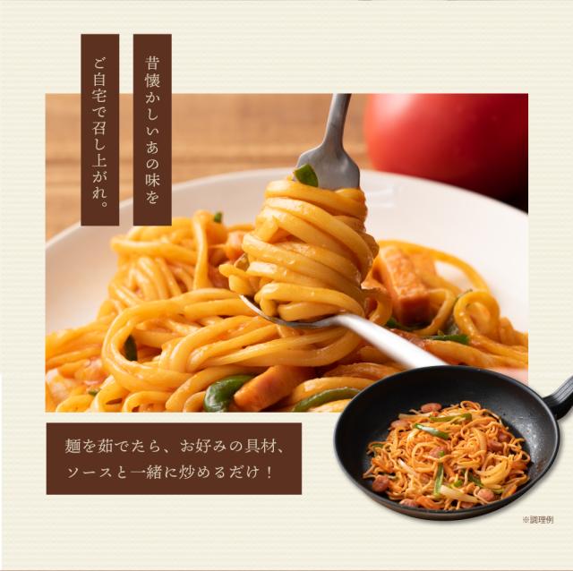 | 【麺】小麦粉(国内製造)、食塩、糖類(麦芽糖、ぶどう糖) /酒精、pH調整剤、加工でん粉、(一部に小麦を含む) 【ナポリタンソース】トマトペースト、果糖ぶどう糖液糖、 ソテーオニオン、食塩、たん白加水分解物、ニンニクペースト、 大豆油、マーガリン、香辛料、チキンエキス/ 増粘剤(加工でんぷん)、調味料(アミノ酸等)、香料、 アナトー色素、(一部に乳成分・大豆・鶏肉・豚肉を含む) |