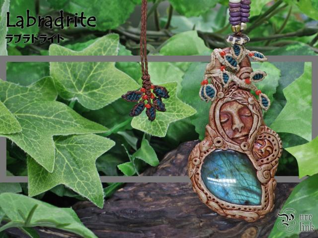 月と太陽を象徴する魔石『ラブラドライト』女神クレイアートマクラメ編トップネックレス3