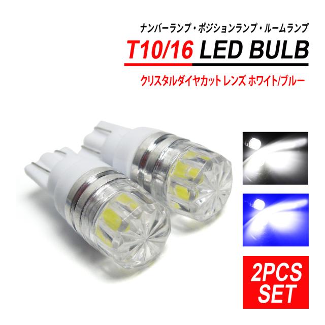 T10 / T16 LEDバルブ クリスタルダイヤカット 2PCS ホワイト ブルー ナンバー灯 ポジション灯 ルームランプ