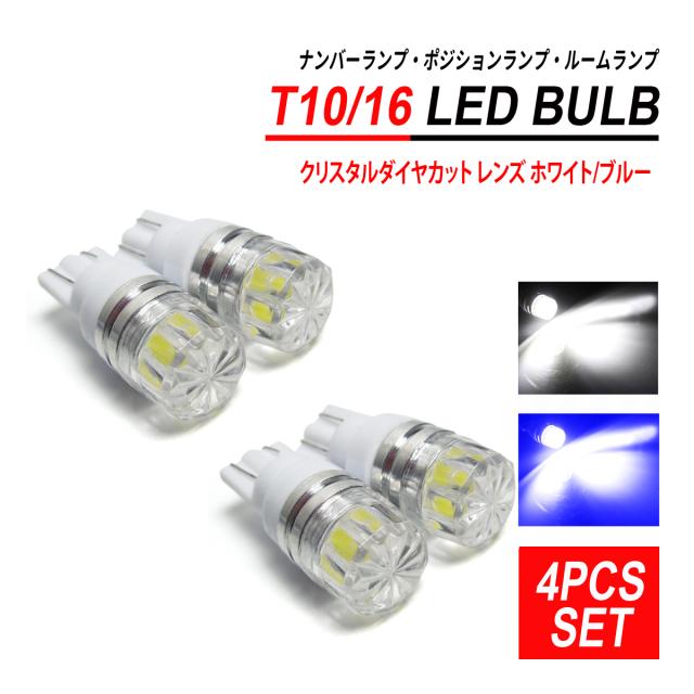 T10 / T16 LEDバルブ クリスタルダイヤカット 4PCS ホワイト ブルー ナンバー灯 ポジション灯 ルームランプ