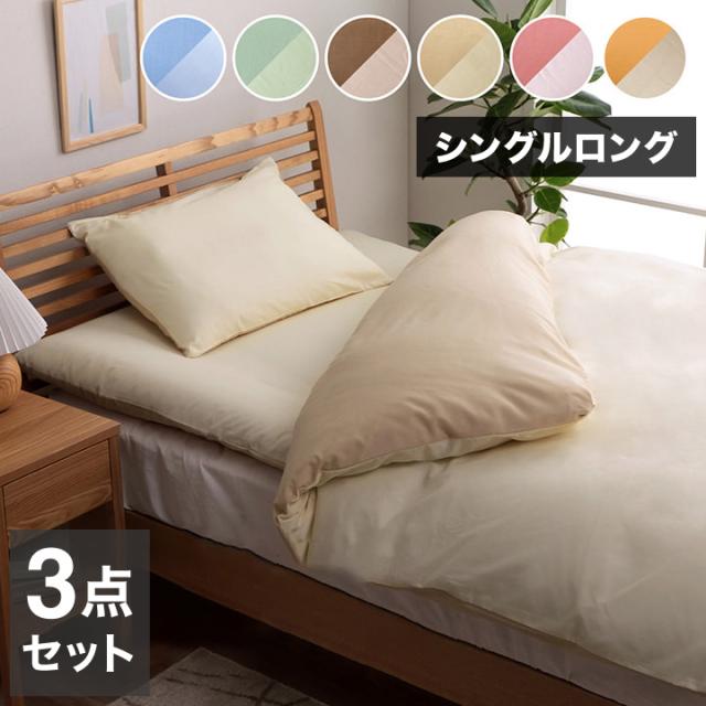 掛け布団カバー、敷き布団カバー、枕カバーまで付いたお得なカバー3点セットです。就職、進学、単身赴任など新生活に最適な商品です。選べる6色展開です。サラッとした肌触りで、季節を問わずオールシーズンご使用頂けます。ご家庭の洗濯機で洗えます(洗濯ネット使用)。乾きやすい仕様になっておりますのでお手軽で清潔にご使用頂けます。本商品はフルオープン式ファスナー付きで、縦方向にファスナーが付いているためスムーズな出し入れが可能です。また、掛け布団カバーには、お布団とカバーがズレにくいよう四隅に固定ヒモを付けております。