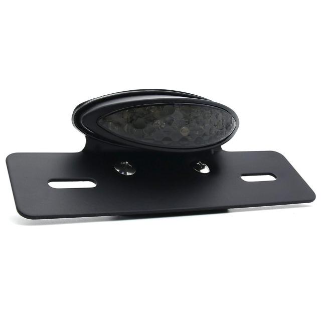 ONGMEIL 汎用 LED スリム キャッツアイ テールランプ ナンバーライト ステー カスタム オートバイ ブレーキ レッドレンズ (Smoke)
