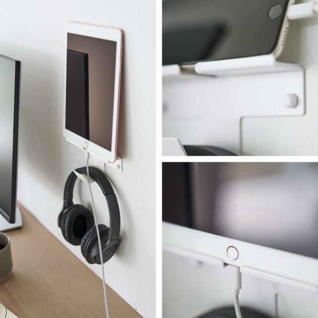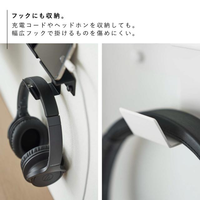 スマートフォンホルダー,スマホホルダー,ヘッドホンホルダー,イヤホンホルダー,タブレット,充電,スチール,充電スポット,デスク,テーブル,置型,引掛け,ケーブル類,幅広フック,傷めない,簡単,かんたん,カンタン,しっかりキャッチ,空間,モダン,モノクロカラー,ホワイト,ブラック,白,黒,自宅,おしゃれ,お洒落,オシャレ,デザイン,こだわりアイテム,ステイホーム,シンプル,ベーシック,揃える,グッズ,インテリア,雑貨,お家時間,一人暮らし,新生活,普段使い,デイリー,おすすめ,便利アイテム,シンプルデザイン,賃貸,マンション,空間利用,お片付け,取付簡単,山崎実業,smart,スマート,空きスペース,有効活用,限られた空間,整理整頓,まとまる,片付け,石膏ボードピン,木ネジ,目立ちにくい,目立たない