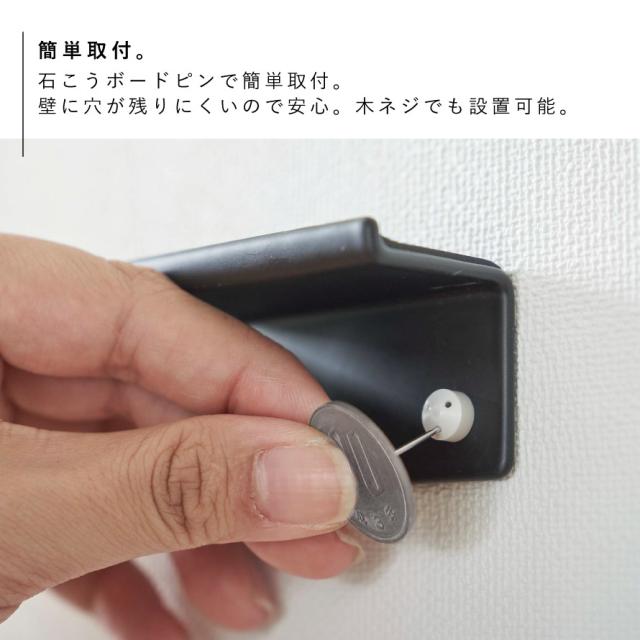 石こうボードピンで簡単取付。壁に穴が残りにくいので安心です。木ネジでも設置可能。