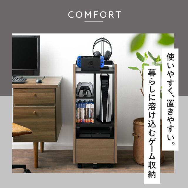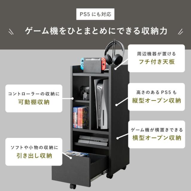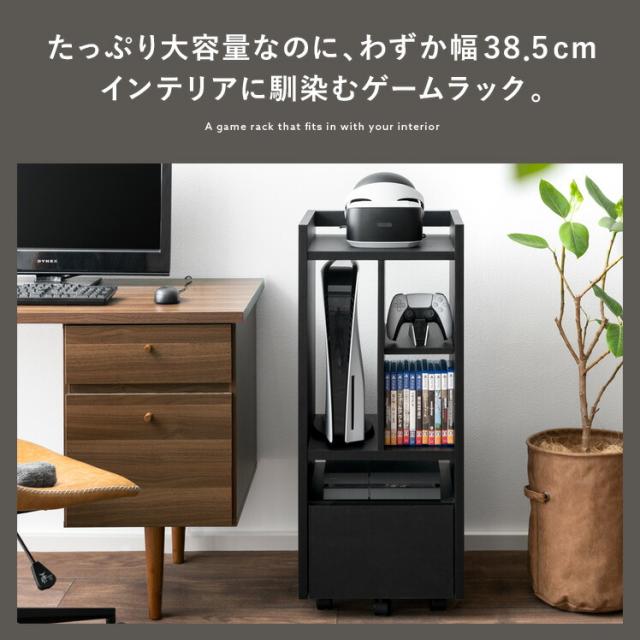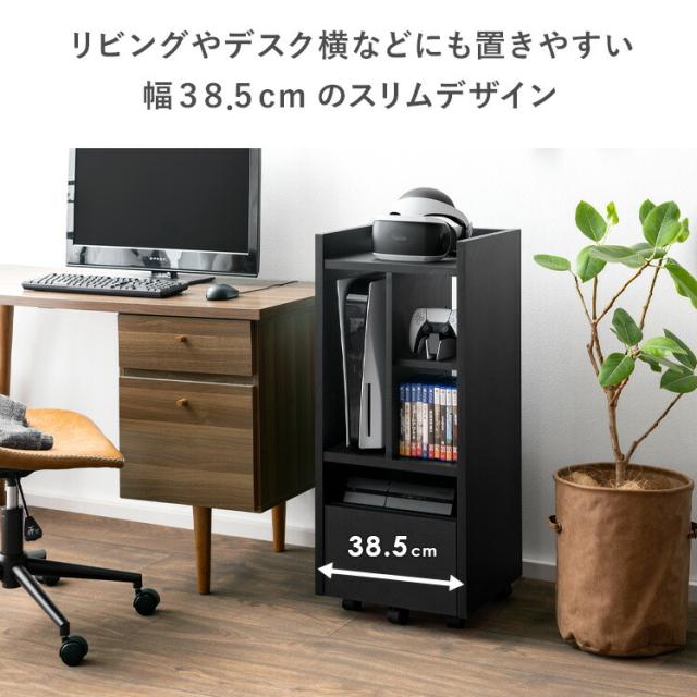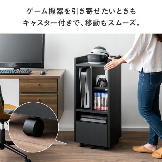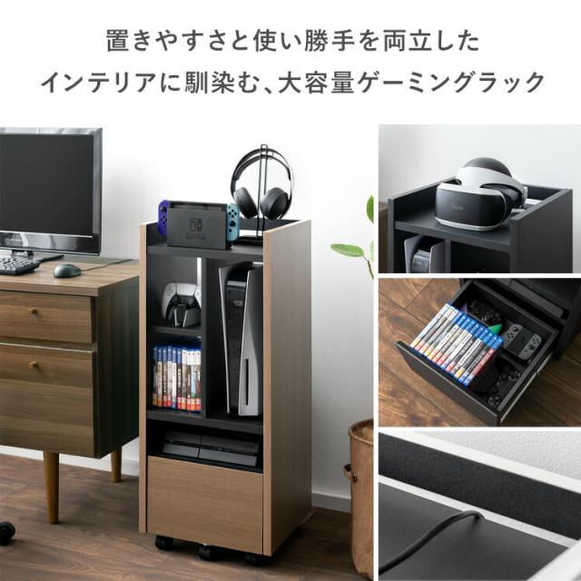 ゲームラック ラック おしゃれ 収納棚 ゲーム機 収納 PS5 コントローラー収納 ゲーム機収納ラック 引き出し リビング収納 ゲーム スリム キャスター付き ブラウン ブラック ホワイト
