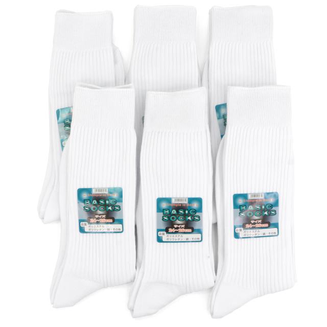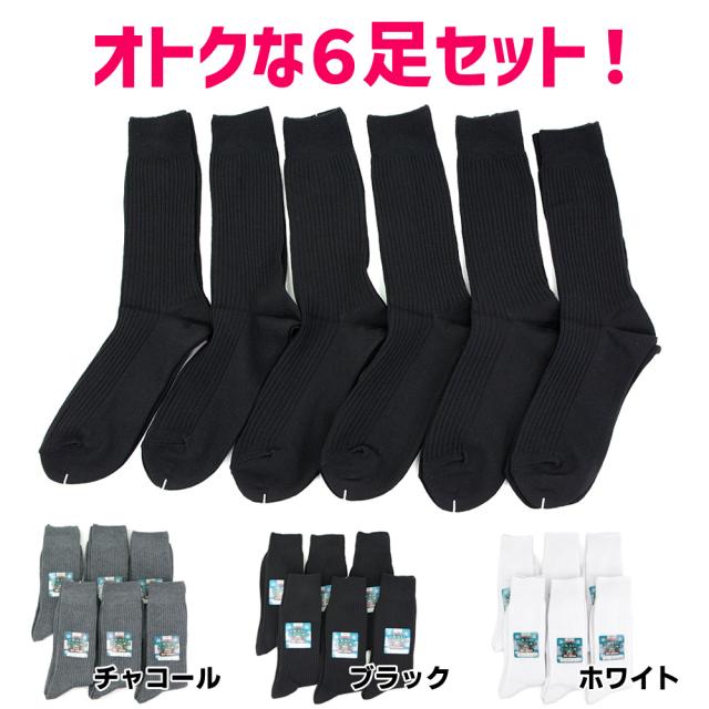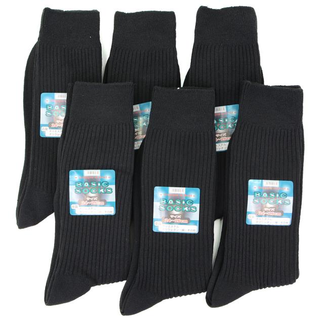 靴下 メンズ クルー丈 リブソックス 6足組 ビジネス ソックス デイリー くつ下 黒 白 無地 シンプル クルーソックス 【メール便送料無料】 24〜26cm 26〜28cm 紳士 男性 通勤 通学 休日 綿混素材 リブ編み 涼しい 爽やか♪工場出荷人気No.1 agesugi_sfa