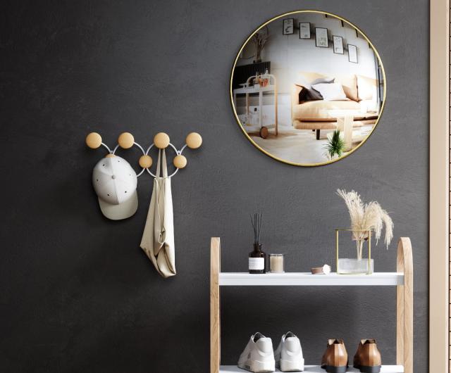 フックの先端が円形になっているので、掛けた物が落ちにくい設計になっています。帽子、バッグ、ジャケット、スカーフなどの日用品やアクセサリーを収納するのにも最適です。