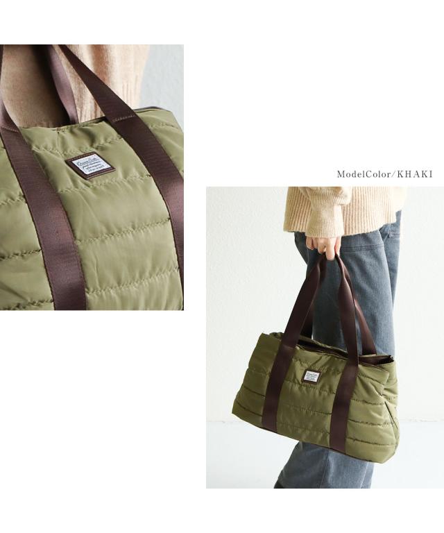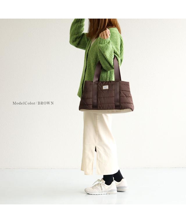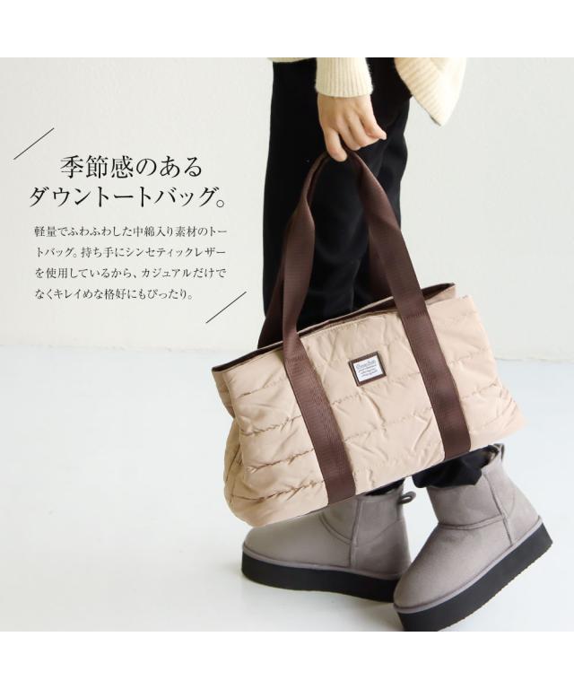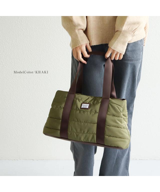 軽量でふわふわした中綿入り素材のトートバッグ。