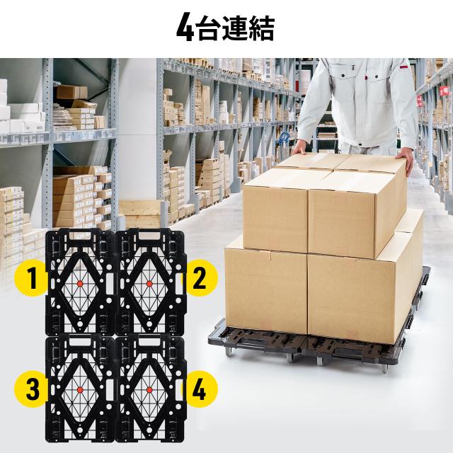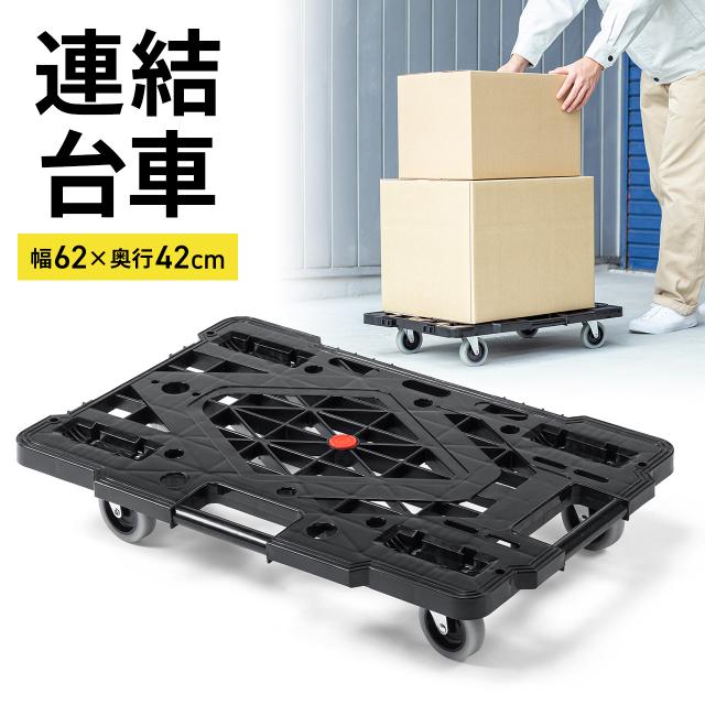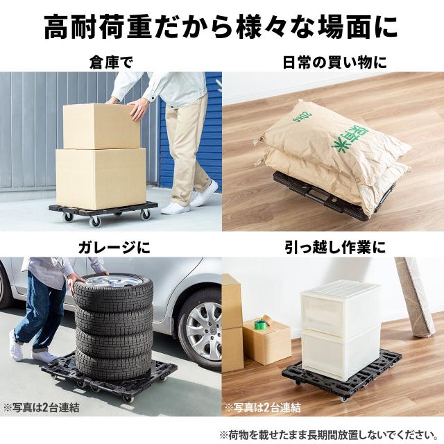 平台車 連結 キャスター付 耐荷重80kg 積み重ね可能 ブラック[100-CT004]