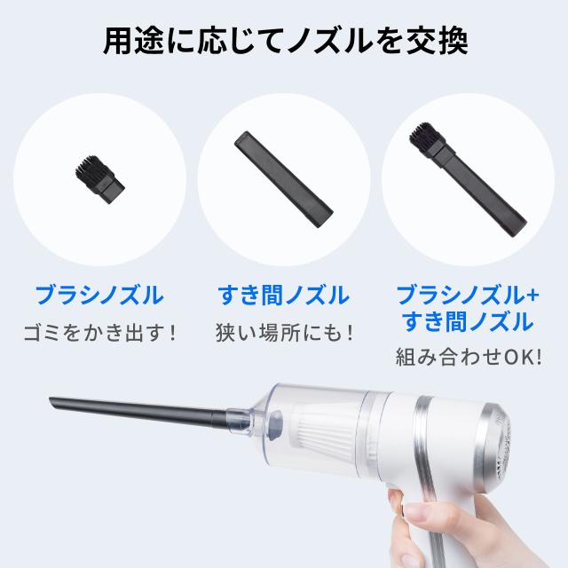 ハンディクリーナー コードレスクリーナー 小型クリーナー 車用クリーナー 充電式 ノズル付き[200-CD077]