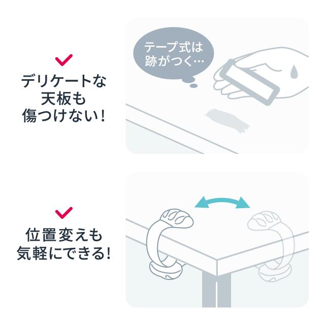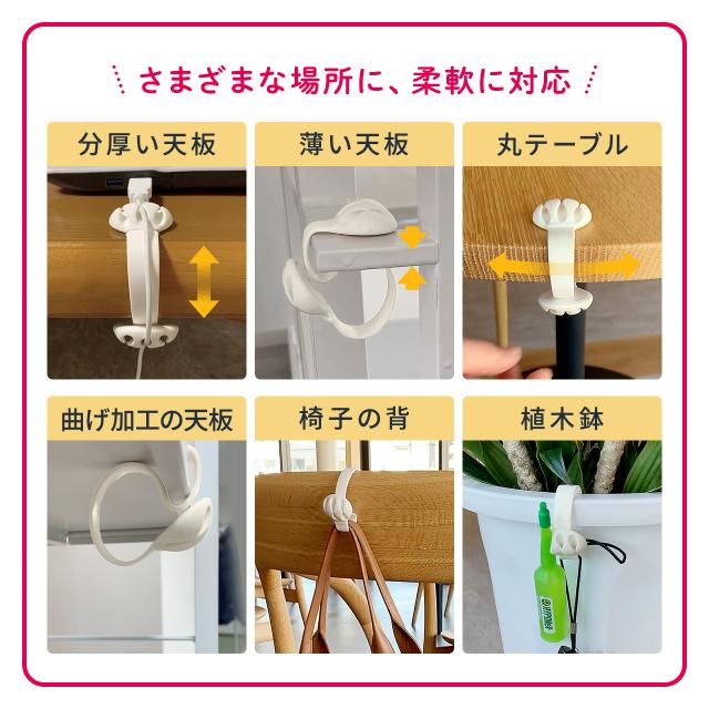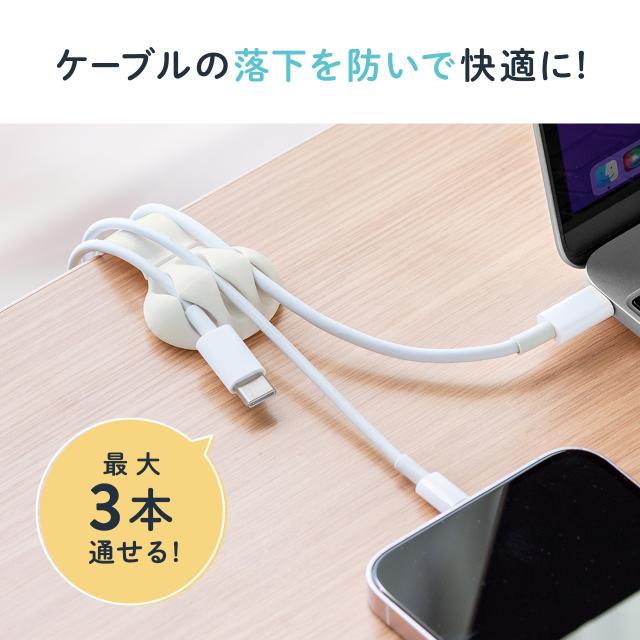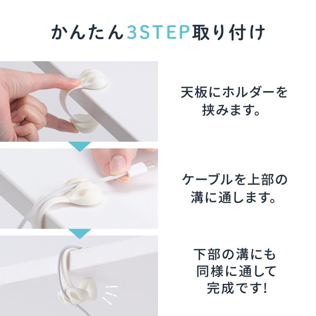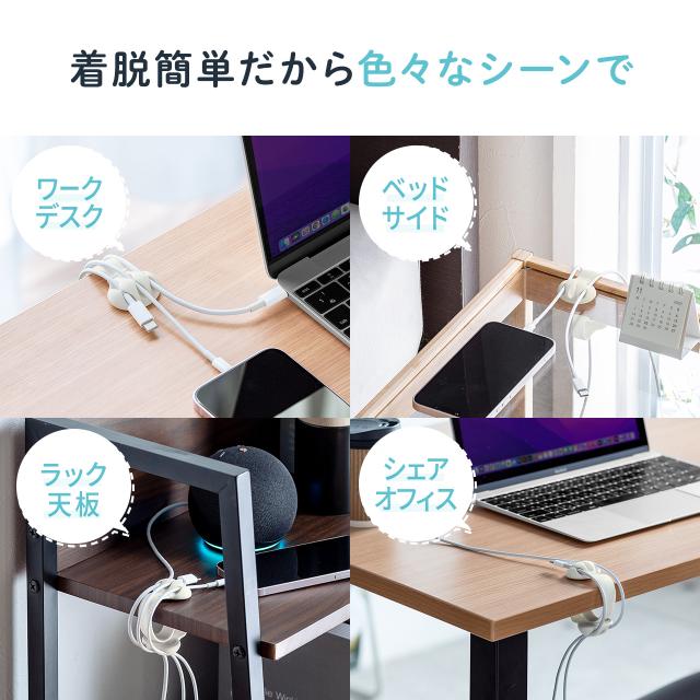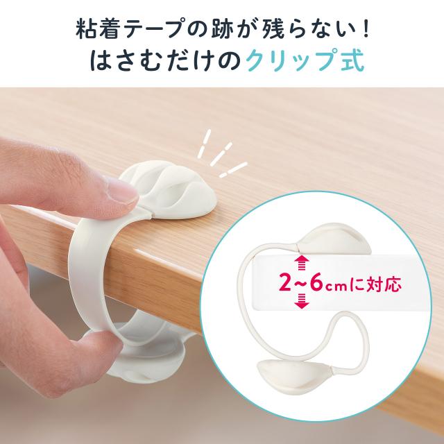 ●天板などに挟むだけで使用できるケーブルホルダーです。●バラバラ落ちがちなケーブルを固定でき、快適に使用できます。