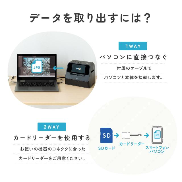 ●スキャン画像はSDカードに自動保存されるので、パソコン不要で使用できます。