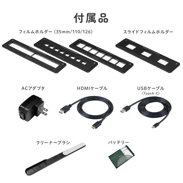 フィルムスキャナー 35mm/110/126フィルム対応 ネガデジタル化 ネガスキャナー 写真スキャン HDMI出力対応[400-SCN064]
