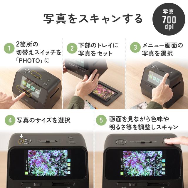 ●昔撮影した写真やネガフィルム、ポジフィルムをスキャンし、データとして保存できる、写真・フィルムスキャナーです。●データとしてパソコンなどに保存することにより、思い出の写真やフィルムを劣化から守ります。