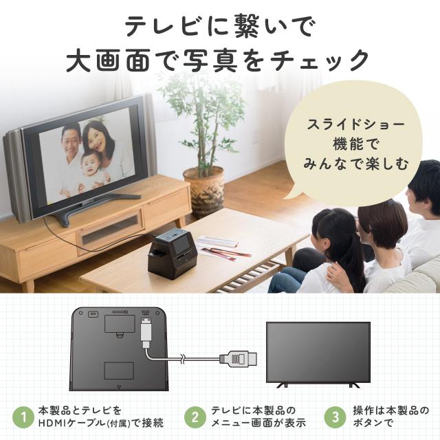 ●HDMI出力が可能で、テレビに映してスキャンや、スライドショーをテレビに映して皆で共有することができます。