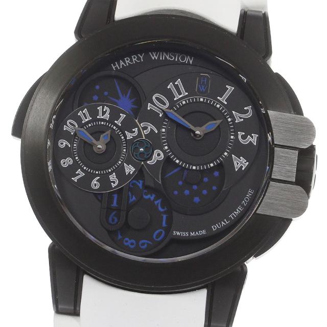 ☆美品 ★箱・保証書付き【HARRY WINSTON】オーシャン デュアルタイム ブラックエディション OCEATZ44ZZ007 自動巻き メンズ_712786