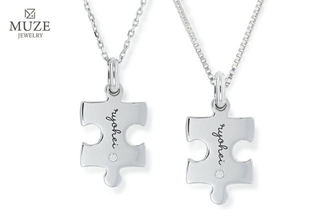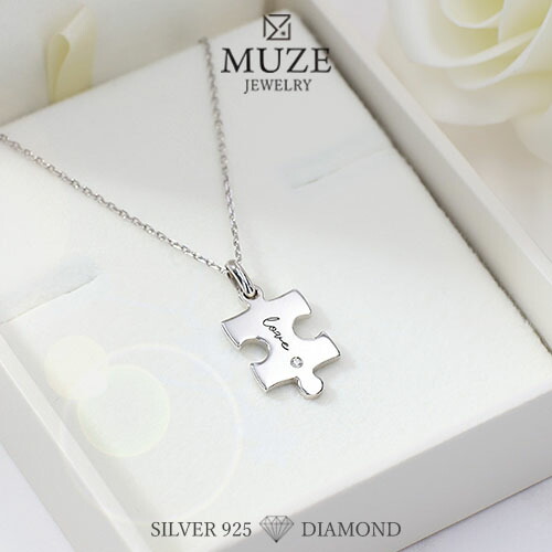 MUZE JEWELRY ダイヤモンド ネックレス パズル ネックレス シルバー プラチナ仕上げ ピース ペンダント トップ レディース ジュエリー made in japan