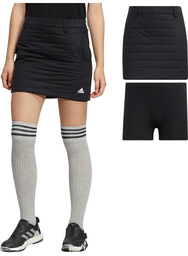 とてもスカート日和とは言えないような寒い日でも、なんとなくスカートをはいてゴルフをしたいときがある。そんなときのためにアディダスがデザインしたのが、冷たい風から身体を守る、WIND. RDYのスカート。心地よい暖かさがちょうどいい、軽い中わた入りモデル。スイングやしゃがんだりする動作中も人の目を気にしなくて済む、取り外し可能なインナーパンツが付いている。