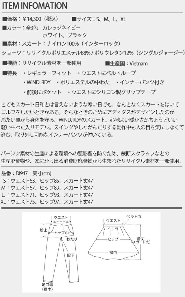 2022年秋冬モデル日本正規品20%OFF アディダス スリーストライプス ニットスカート レディース ゴルフ ウェア 「Adidas Golf DI947」
