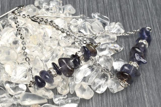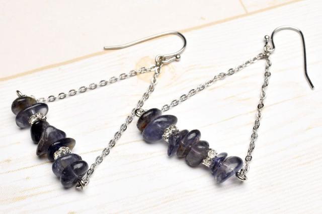 さざれ◇天然石 スィング アイオライト ピアス 当店オリジナルデザイン _A1193