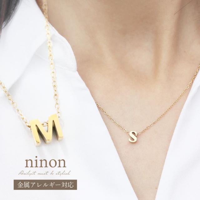 ネックレス レディース チェーン アクセサリー アレルギー対応 ゴールド シンプル 華奢 つけっぱなし アレルギー対応ネックレス おしゃれ ステンレス イニシャル N〜Zまで 槌目 細め 大人 通勤 通学 金属アレルギー アルファベット スライド カジュアル 高見え 普段使い 上品