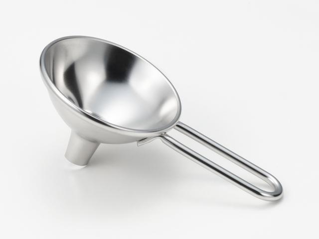 ろうと 手付きロート 小 料理のいろは 日本製 ( 漏斗 じょうご 詰め替え 移し替え 便利 取っ手付き ステンレス製 ミニサイズ 燕三条 持ち手付き 液体 粉末 入れ替え 使いやすい 簡単 丈夫 耐蝕性 耐久性 醤油 調味料 小さい )