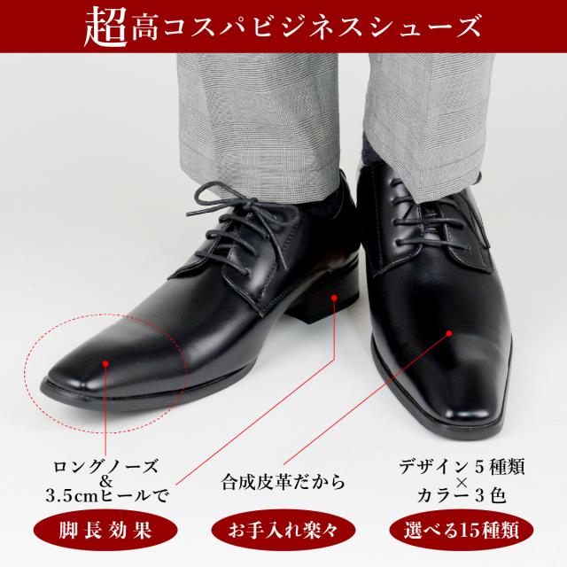 ビジネスシューズ メンズ 革靴 黒 3.5cmヒール ロングノーズ レザー 合皮 AAA+ サンエープラス ポインテッドトゥ 内羽 外羽 モンク ブラック 茶 ブラウン 24.5-28cm 紳士靴 おしゃれ No.2641-2645 264