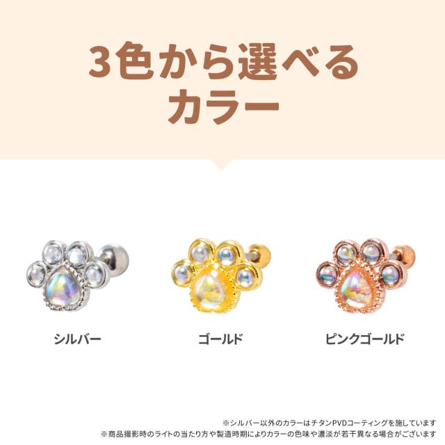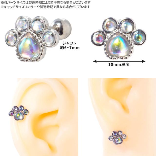 2個セット オーロラ ストーン 肉球 ストレートバーベル 14G 16G 18G 20G サージカルステンレス ヘリックス 軟骨ピアス ボディピアス