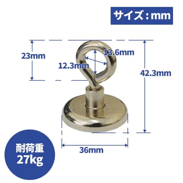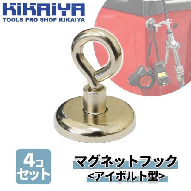 マグネットフック アイボルト型 4個セット 磁石 超強力 ネオジム磁石 27kg 36mm KIKAIYA