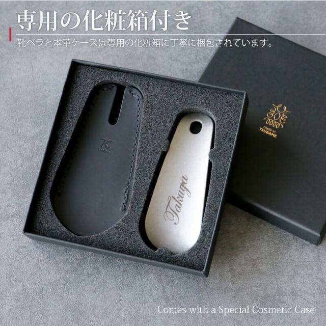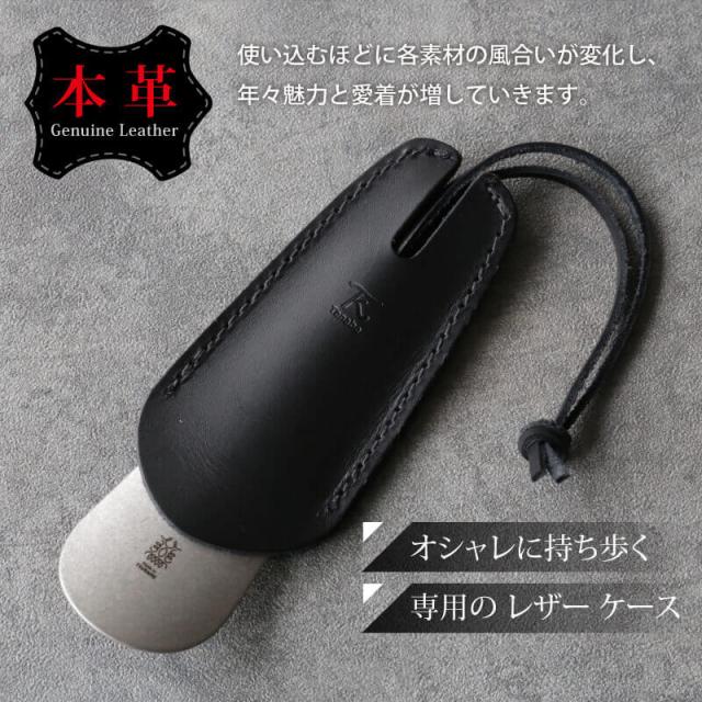 \ スマートな ビジネスマン の必需品! / MADE IN 燕三条 の 高級 感あふれる コンパクト な 靴ベラ は レザー ケース つきで使い勝手抜群! プレゼント にも喜ばれます♪ 名入れ 無料