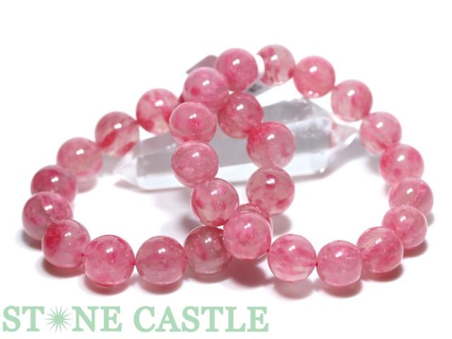 ☆高品質☆【天然石 ブレスレット】桜ピンクロードナイト (3A) (マダガスカル産) (約13.5〜14mm) (ケース付)