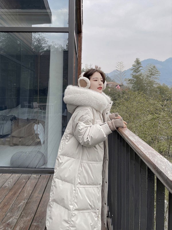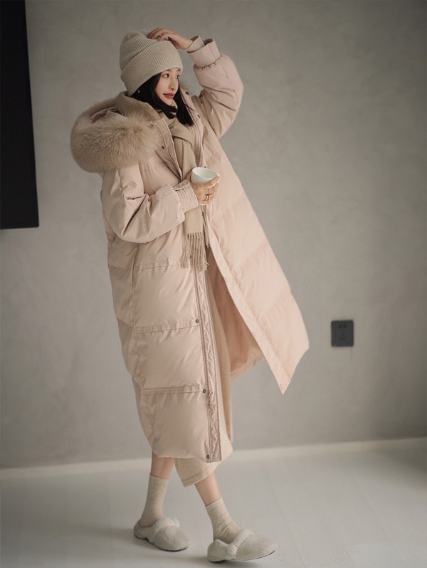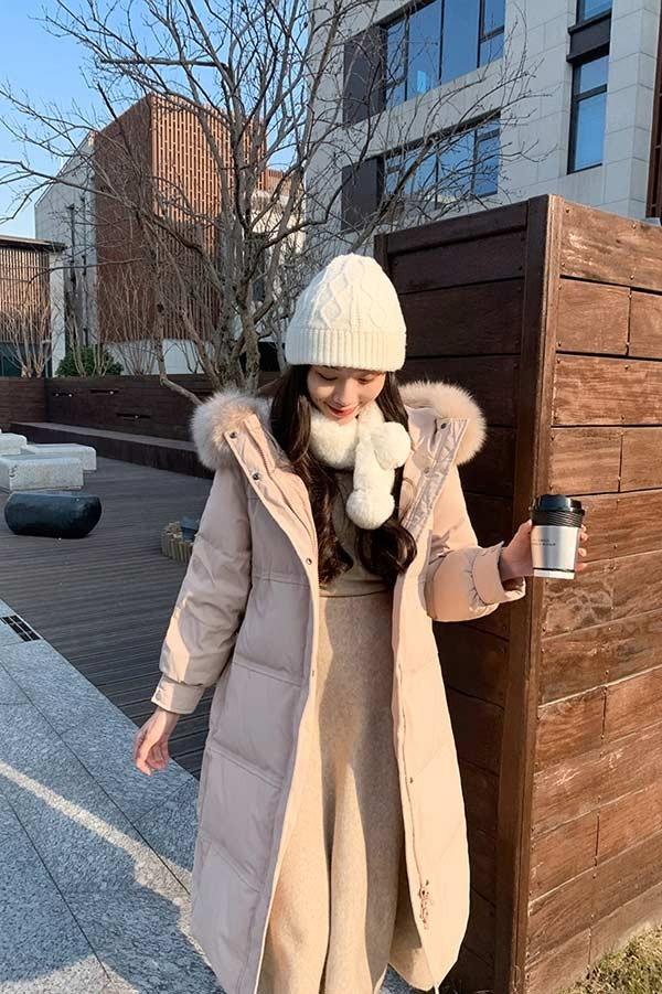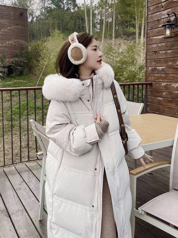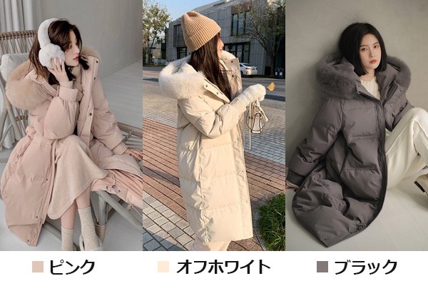 ダウンコート レディース 膝丈 冬服 ファー ダウン ダウンジャケット アウター 冬 かわいい 学生 通勤 女の子 カジュアル 着痩せ コート ロング丈 長袖 袖あり 厚手 防寒 寒さ対策 冷え対策 ポケット付き 秋冬 韓国風 オシャレ ふんわり 柔らかい 軽い着心地 あったか 暖かい オフホワイト ピンク ブラック 大きいサイズ L