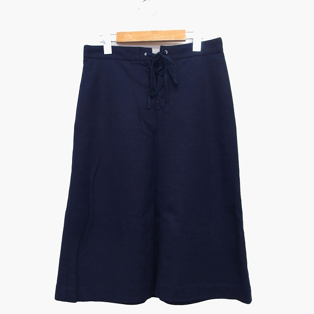 【中古】スピック&スパン Spick&Span Aライン スカート ロング レースアップ リボン 無地 ウール 毛 38 ネイビー 紺