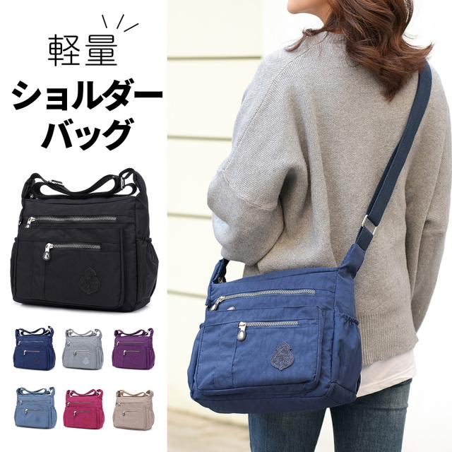 ショルダーバッグ レディース 斜めがけ 大人 軽量 撥水 ナイロン 肩掛け 通勤 ファスナー シンプル バッグ 鞄 かわいい