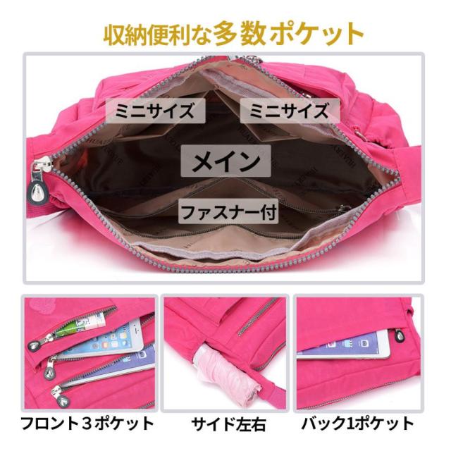 | 商品名 | ショルダーバッグ レディース 斜めがけ 大人 軽量 撥水 ナイロン 肩掛け 通勤 ファスナー シンプル バッグ 鞄 かわいい |