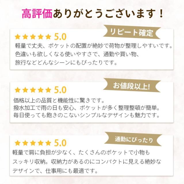 - 軽くてポケットが多くて、あと紐が長いのが特に気に入っています。 通勤用にピッタリです。