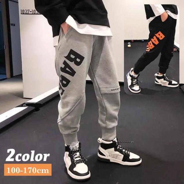 スウェットパンツ ロングパンツ 長ズボン 子供服 キッズ ジュニア 男の子 女の子 ボトムス 英字ロゴ リブ裾 ウエストゴム ポ