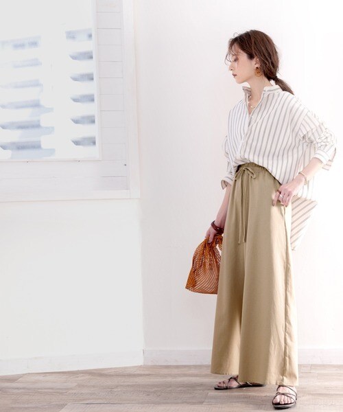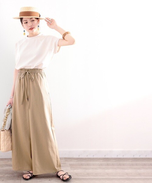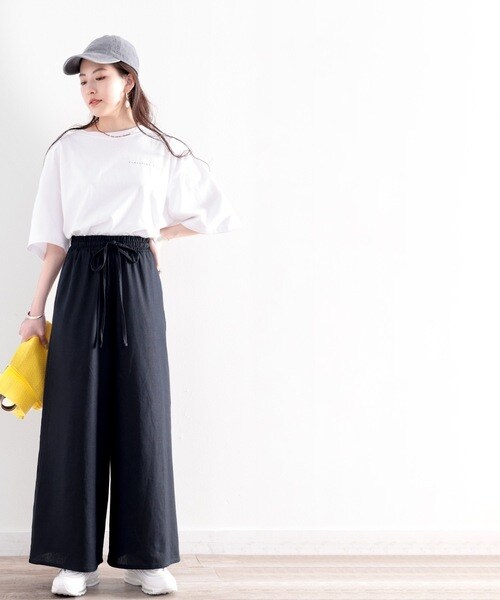 ウエストはゴム仕様なので穿き心地も良く、トップスインのスタイリングも楽に決まる。