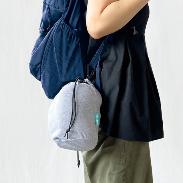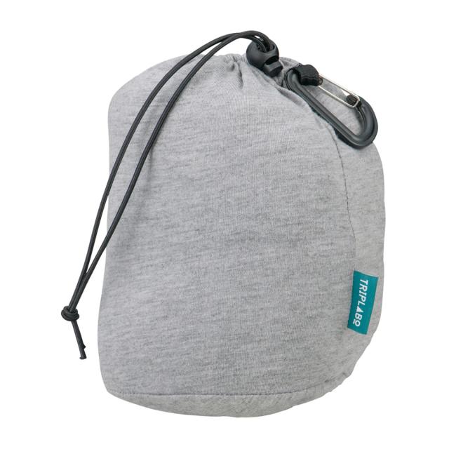 アイマスク&ピローを収納できるカラビナ付きの専用のポーチが付属しているので旅のお供に持ち運びやすいコンパクトさです。
