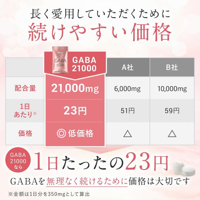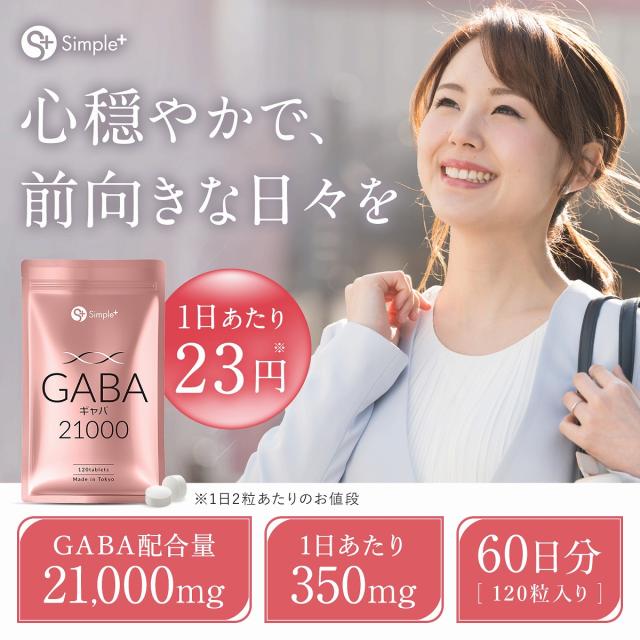 GABA ギャバ サプリ 21000mg配合(1袋) 120粒 60日分 1日2粒350mg タブレット 睡眠 ストレス 血圧