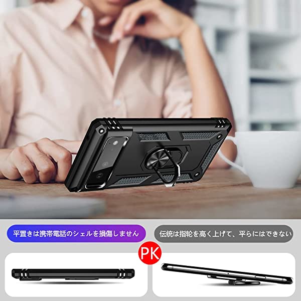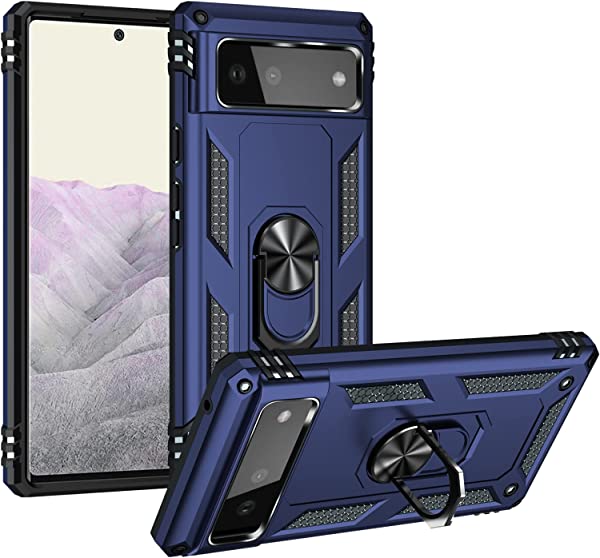 Google Pixel 6A ケース リング付き 落下衝撃吸収 TPU PC 米軍MIL規格 二重構造 スタンド機能 スマホケース グーグル ピクセル 6a ケース 耐衝撃 車載ホルダー 軽量 擦り傷防止 取り出し易い 落下防止 携帯カバー 青 ブルー