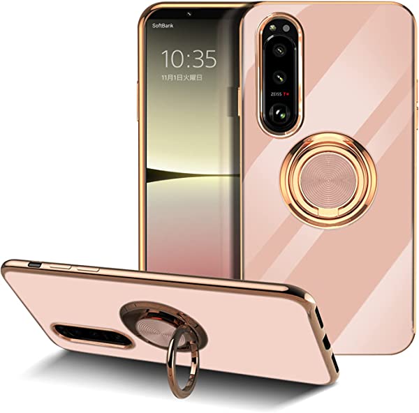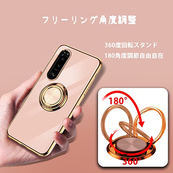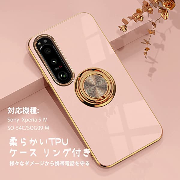 Sony Xperia 5 IV SO-54C/SOG09 ケース リング付き カバー TPU素材 スタンド機能 エクスペリア ファイブ マークフォー 軽量 耐衝撃 薄い 擦り傷防止 落下防止 車載ホルダー 360°回転 ケース Sony Xperia 5 IV (ピンク)